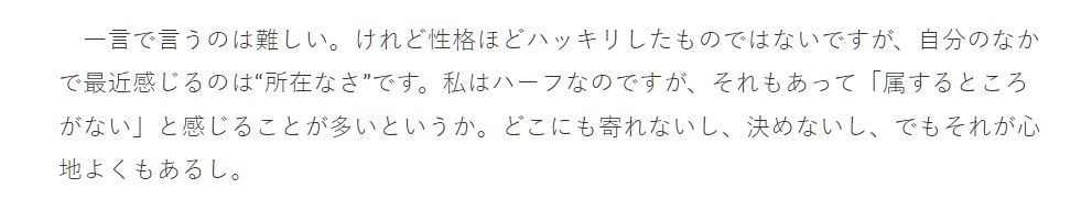 具体的には、そのインタビュー内で、現在の活動や家族構成、育った環境などに触れる中で、「自分はハーフ」と自然な流れで述べています。これは、彼女がアイデンティティの一部として受け入れ、隠す必要がないと感じていることを意味すると捉えることもできます。また、Wikipediaの記述でも「ハーフであることを公表している」と明記されており、信頼性の高い情報と言えるでしょう。